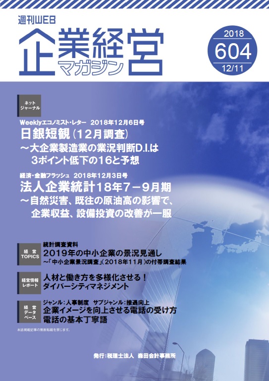 TOP > 業界情報レポート > 週刊WEBマガジン企業編 > 2018.12.11 No.604