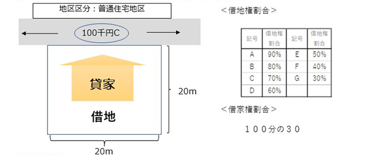 ・路線価がない場合:市区町村ごとに借地権割合を地域区分で一律に設定しています。評価倍率表に記載されています。