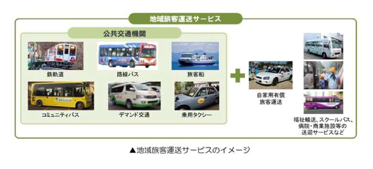 地方公共交通計画では、有償旅客運送やスクールバス、福祉輸送、病院・商業施設・宿泊施設・企業などの既存の民間事業者による送迎サービス、物流サービス等の地域の多様な輸送資源についても最大限活用する取組を盛り込むことで、持続可能な地域旅客運送サービスの提供を確保することを求めています。