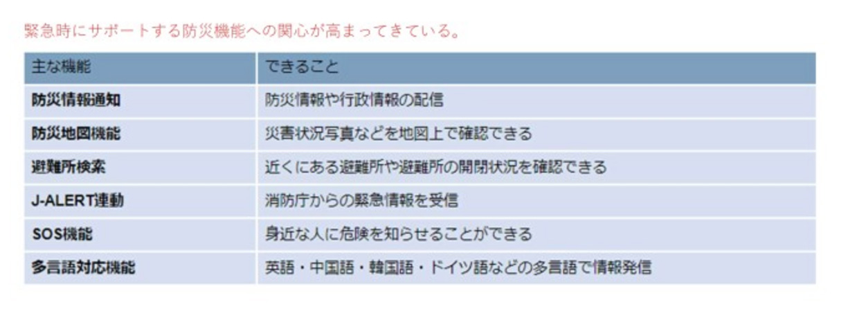 住民はアプリをインストールするだけで、情報を自動的に受け取ることが可能となり、WEBサイトやSNSなど、複数のツールで発信していた情報を1つにまとめることができるため、発信する自治体側も、情報を受け取る側の住民も便利になり、スムーズに情報の受け渡しを行うことができる。