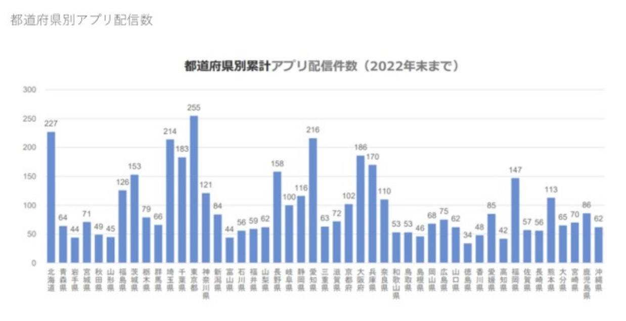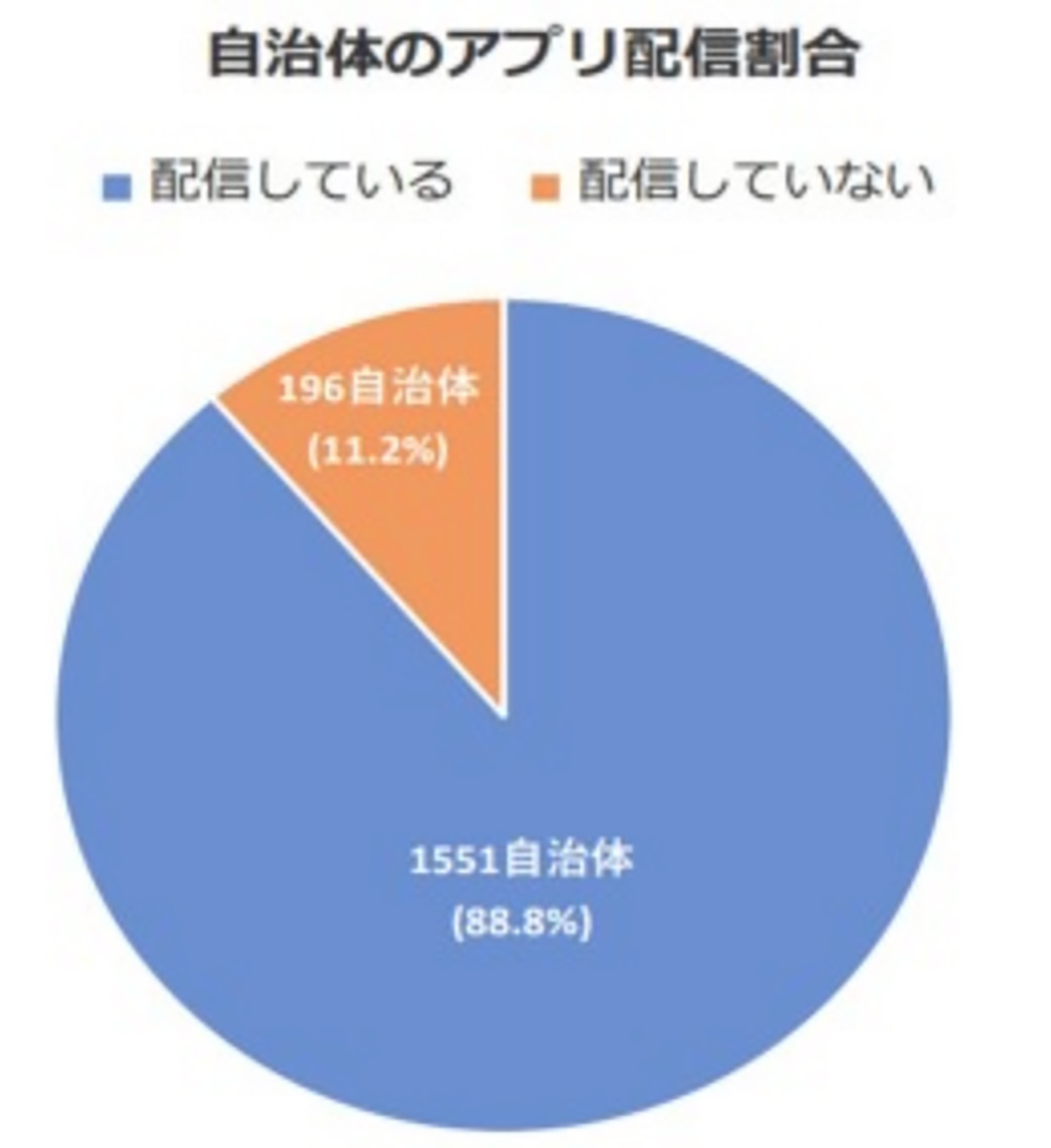 日本全国の1747市区町村中、1551自治体(88.8%)が自治体アプリを配信