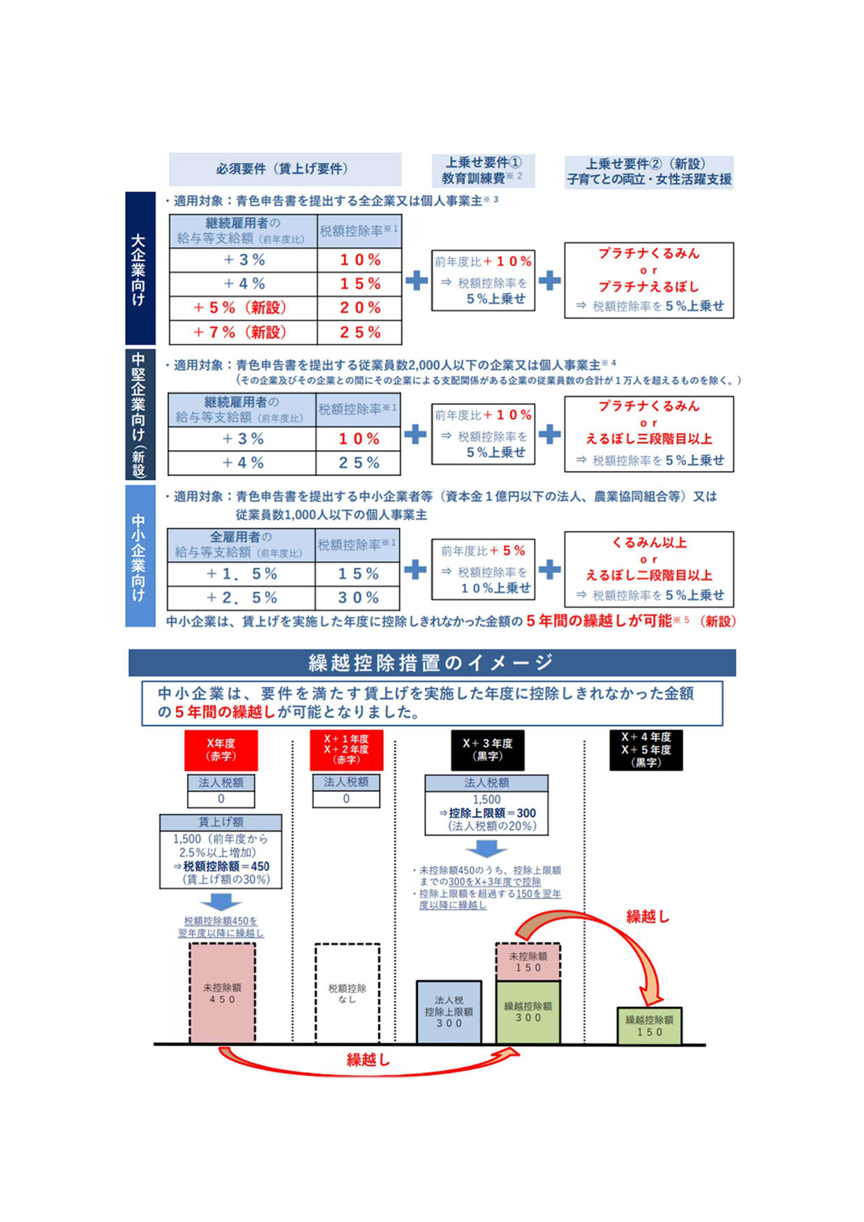 (賃上げ4%以上に対して5%、5%以上に対して10%、7%以上に対して15%、