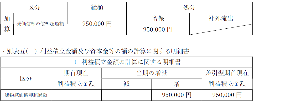 ところで、本事例においては、建物の取得時に仮払消費税等の額として経理した金額を、決算時に雑損失として計上しています。この雑損失の額は、本来は建物の取得価額に算入すべきものですが、「償却費として損金経理をした金額」として取り扱い、結果として償却限度額を超える部分の 95 万円を減価償却の償却超過額として当該事業年度の所得金額に加算することになります(新経理通達 14 の2(注)1)。