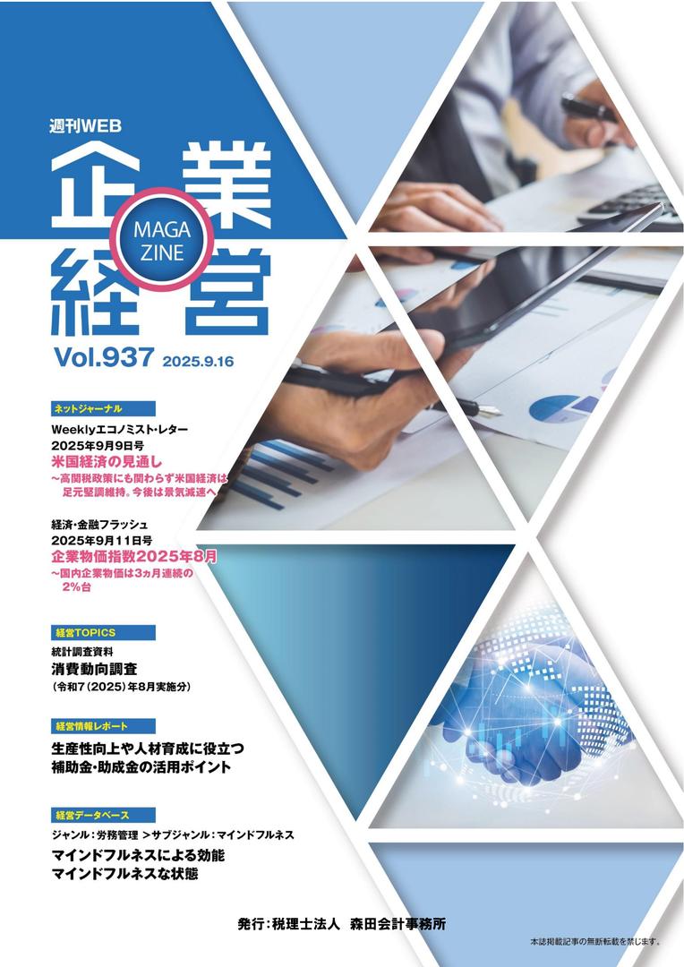 ネットジャーナル Weeklyエコノミスト・レター 2025年9月9日号 米国経済の見通し ~高関税政策にも関わらず米国経済は 足元堅調維持。今後は景気減速ヘ 経済・金融フラッシュ 2025年9月11日号 企業物価指数2 […]